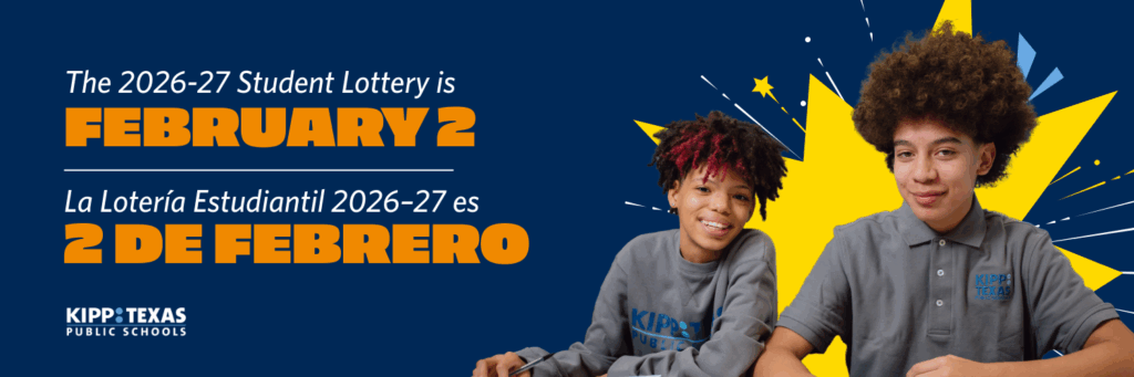 Did you miss the lottery deadline? No worries! Submit a post-lottery application for the 2026-27 school year. KIPP Texas welcomes applications year-round. While applications received after the Monday, January 26, 2026 application deadline won’t be part of the lottery, they will be added to the waitlist in the order they are submitted.